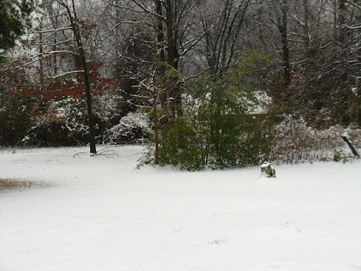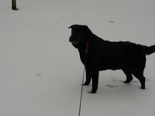 Luckily, no work for me today, but it ended up being just me & Lizzy (my 'sister with fur'), as mom and my brother both ended up having to go in. I've got to go in a little while & pick mom up. We didn't want her driving, so my brother took her & I'll go get her when she's ready. I've just been hanging around with Lizzy and watching some tv. I canceled my cable just after Thanksgiving, so this has been a real treat for me to watch a few shows. As promised, I've got a few pictures of the snow we got overnight. I took Lizzy out a little bit ago to potty & she insisted on playing, so I took the opportunity to grab a few shots. ENJOY!!!