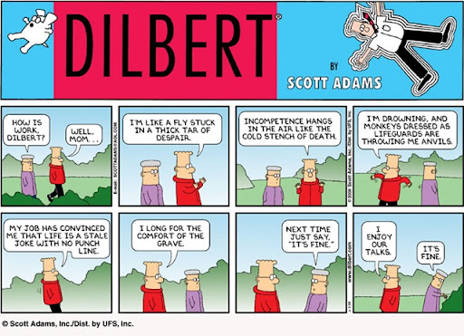 I thought this was a great comic, also. Dilbert ALWAYS has a way of describing my work perfectly...that's sad, isn't it?
